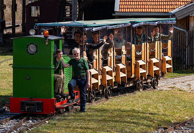 - eine Fahrt mit der historischen Feldbahn (Lok Molly) über das ehemalige Werksgelände